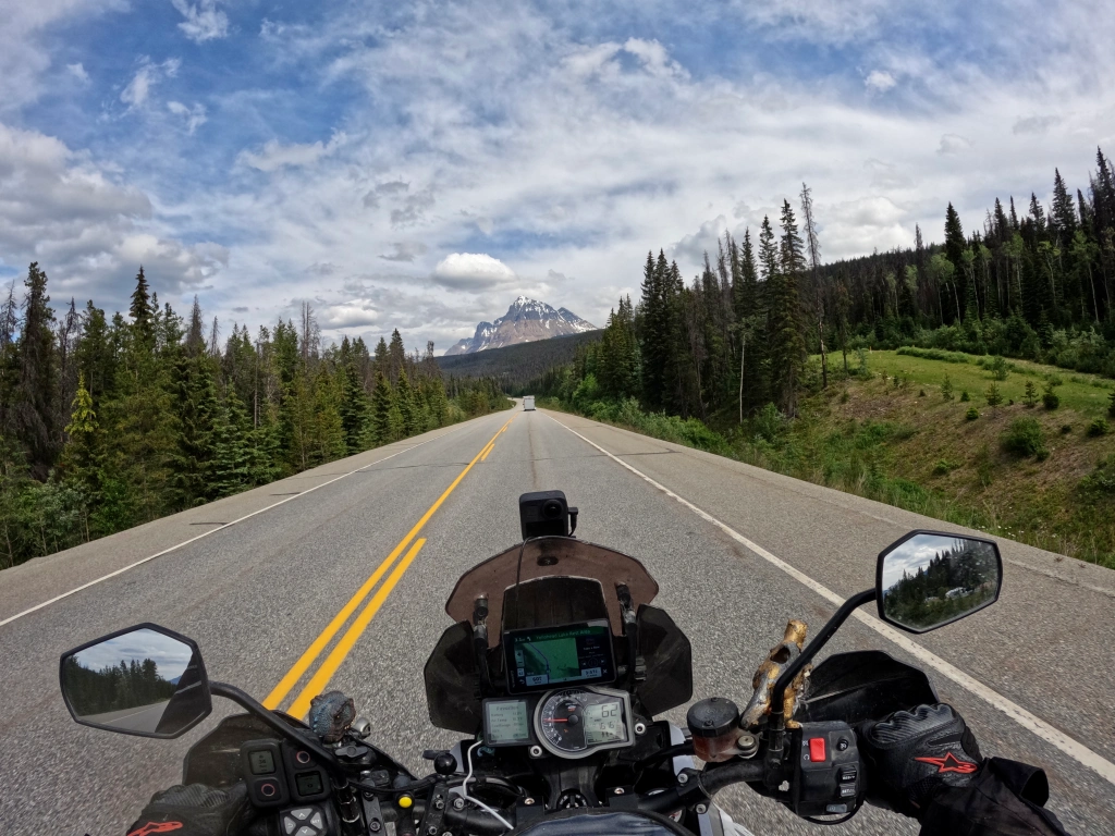 So I’m going to go ahead and take a big ol bite of my own words here today. “O boohoo! Poor me, my motorcycle is too nice!” Well it’s days like today that make it shine! There is just not much to see along highway 16. And it’s all high speed wide road. Cruisin. All day. I stopped ONE time today. Mostly cause there was nothing to see but also cause I just didn’t need to. Seat heater on and tunes turned up. I was comfortable and rockin out. Once I was about 100 miles from Jasper things started to look interesting again…..and then my helmet GoPro died🙄. I still got a couple shots with the 360 camera. Ugh pictures wont upload watch the video