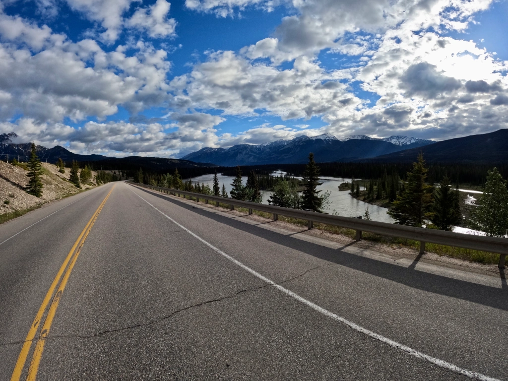 We rode together for an hour or so and then the turn for highway 40 (the scenic route to Alaska) came up and I figured we were all going to turn and then stop and I would get to meet them. Well that didn’t happen, they went straight and I turned. O well, back on my own again.