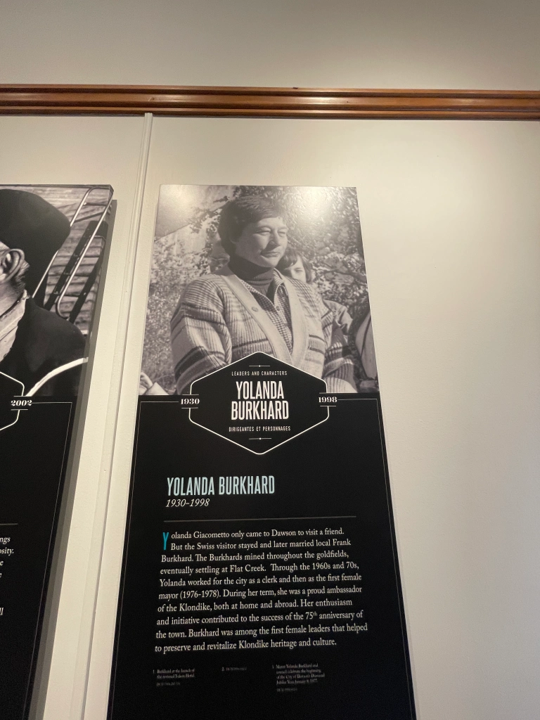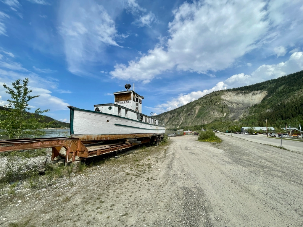 First thing this morning, I rode around looking for breakfast and it turns out that since everything is open late, due to the sun being up all night, they also open late. It took a while to find a place open to feed me. After eating I went for a walk around town. It’s a quiet little town and I covered the whole thing in just a couple hours. I stopped at the visitors center and the Dawson City museum. And again I spent most of the day being a nerd in a museum.