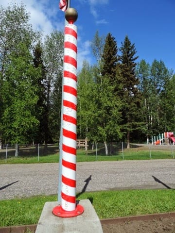 We did stop at North Pole and see the year-round Christmas magic……it made me sick. If you don’t know……there is a town not far from Fairbanks called North Pole and they decorate for Christmas every day……here is a plaque on a piece of cement to give you all the details.