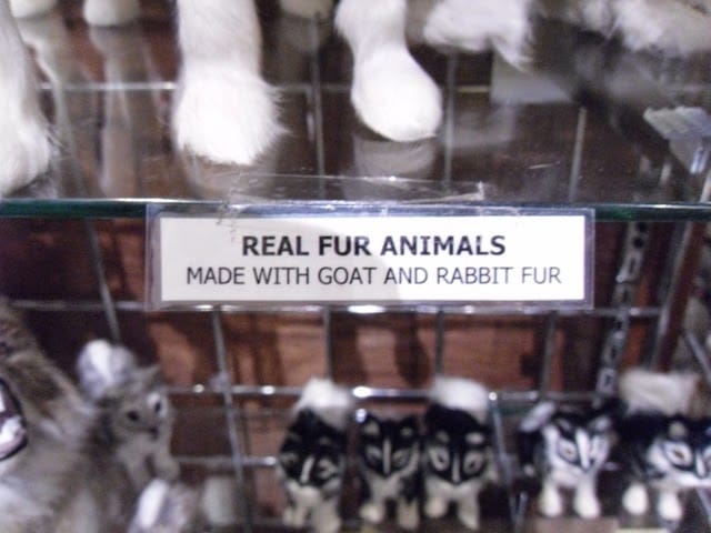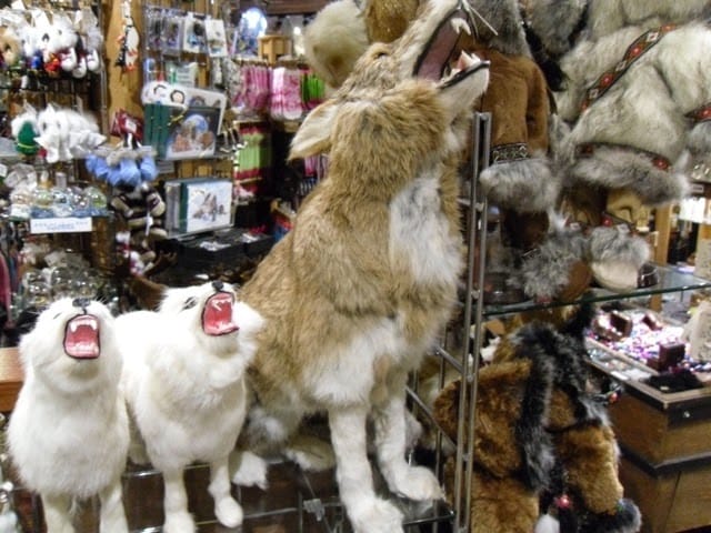 I thought this was kind of ironic…..goats and rabbits made into coyote and wolf statues…..