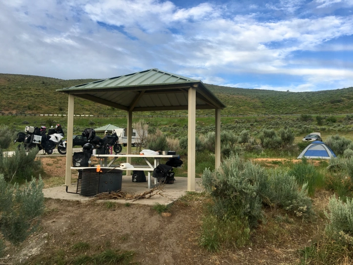 Luckily we outran the rain and Jessi killed it on the highway anyway so we made it to campsite number 2. We were in East Canyon while everything was still wet, the scenery and smell reminded me so much of northern California. I was really bizarre. I want to note here something that I thought of on this trip. The weather is inevitable. Sometimes you will beat it but most of the time you have to submit so maybe I should stop wasting time worrying about it and enjoy the adventure for what it is. It’s so easy to get mad when it rains while riding but it’s just part of motorcycling. It’s time to embrace the rainy days, bring good rain gear, and find the good in bad weather.