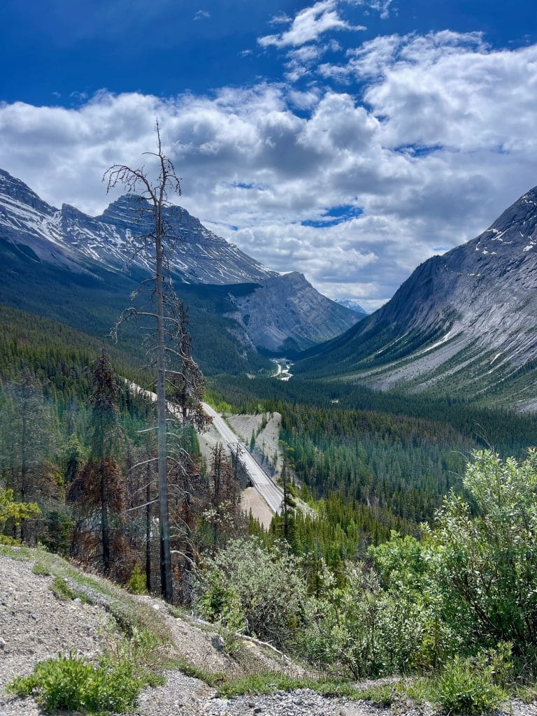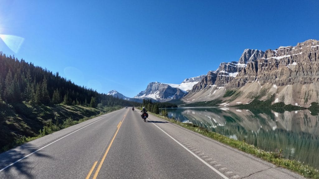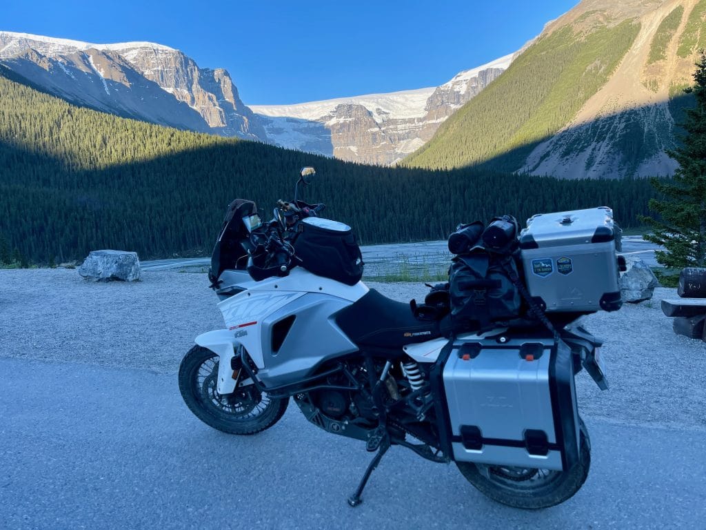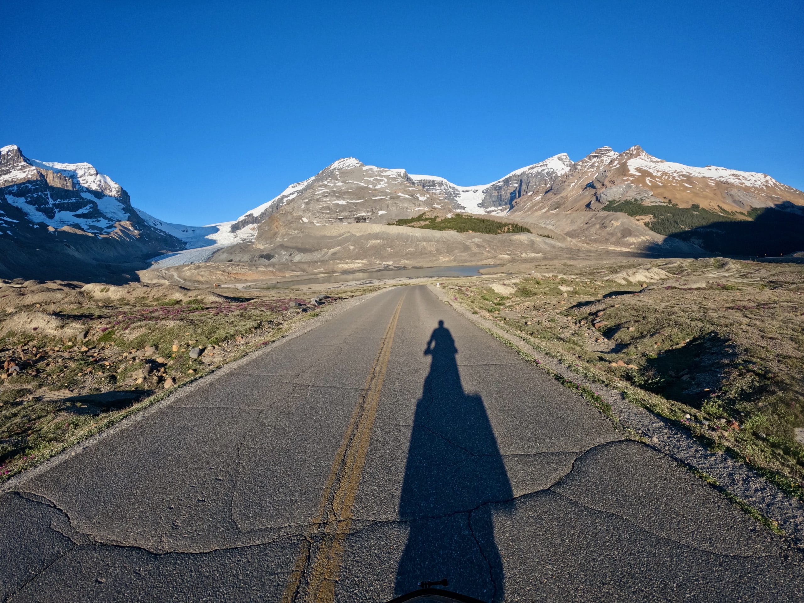 A few days later I realized that my rear tire was getting alarmingly low on tread and made the tough decision to head home the way we had come because it was more direct than the loosely planned route. I hated the idea of splitting up early and missing the rest of the route but my tire was almost toast and I didn’t have time or money to get a new one mid-trip. So I headed east and the rest of the gang headed south. That landed me in Jasper Alberta for the night.