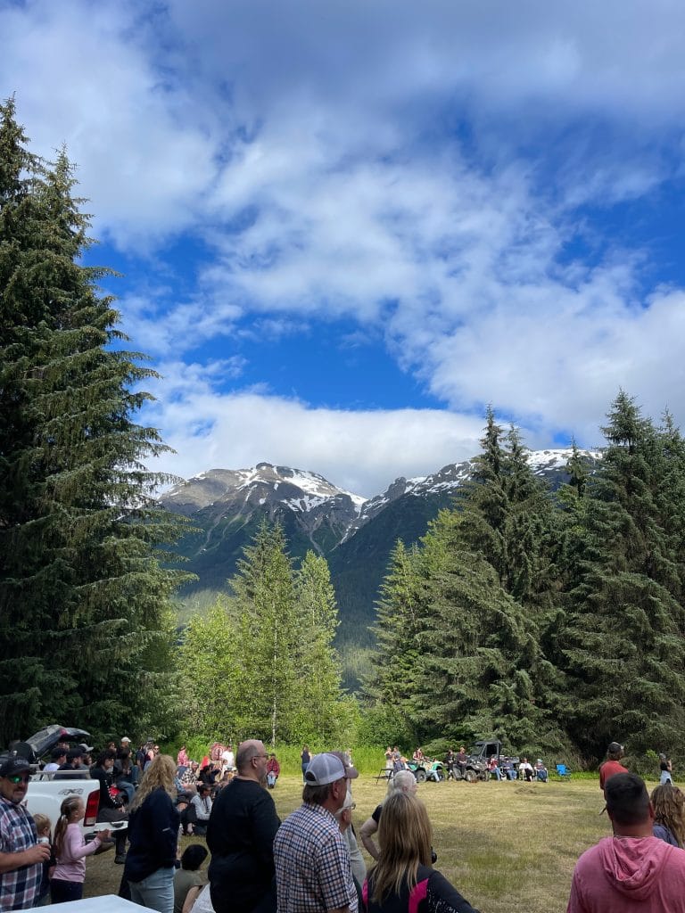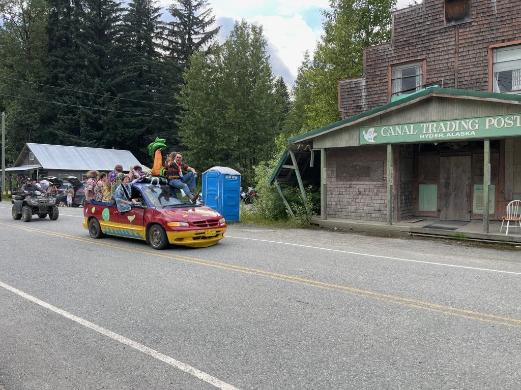We pulled up to Hyder right as the festivities were getting started and had THE COOLEST evening. I did not research the town so we didn’t know what to expect or what to go see. What we found was an awesome little town that blended right into the wilderness. The road that goes through town just keeps heading north and eventually dead-ends at a glacier. We did go up to the bear observation boardwalk but saw no bears so we went back to town. I won’t get bogged down explaining everything. It was a freaking blast though. We got to party with the tiny town of about 70 people and their Canadian neighbors from the town of Stewart. I even mistakenly ended up riding my bike in the parade! I was also detained for 30 minutes at the border for bringing CBD hand cream across the boarder….which, I was informed, is technically international drug smuggling. But it turned out to not be that big of a deal.