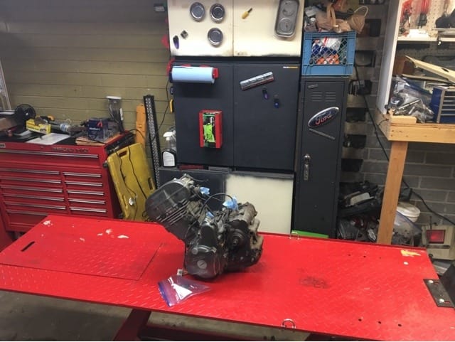 Well this past summer I decided the bike deserves a big bore kit and if I’m going to tear down the engine I might as well get the frame powder coated. I’ve been putting off the project all winter but today I gave in and started the tear down process.