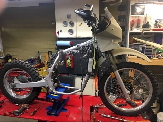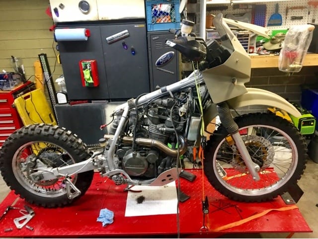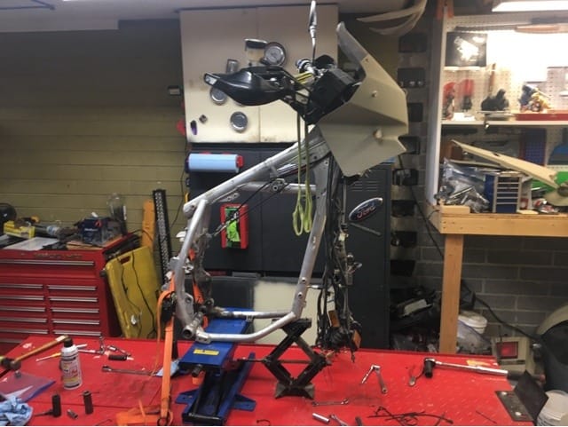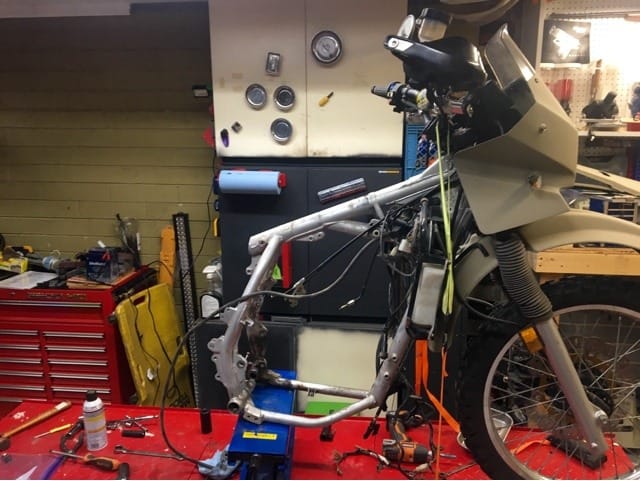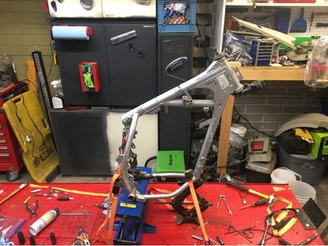 So the plan now is to get the frame powder coated in a nice semi-gloss black and then start reassembling. As it goes back together I will be rebuilding the forks and shock, redesigning the front light and instrument cluster, replacing the radiator, and installing a 692cc big bore kit. Of course this is all a huge waste of money and this bike isn’t worth the fancy handlebars let alone all the other crap….but for some reason I love this stupid thing and I’m going to keep working on it.