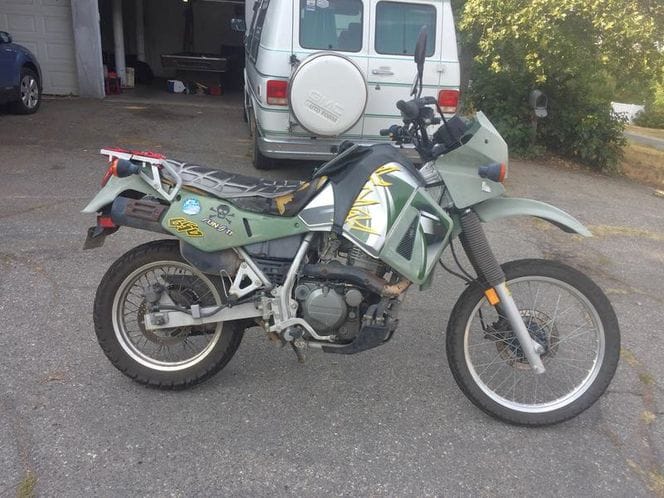 A couple years ago I bought a 2001 KLR650 with the intention of fixing it up and having something for off road trips. Here are a couple pictures of it right from the ad online.